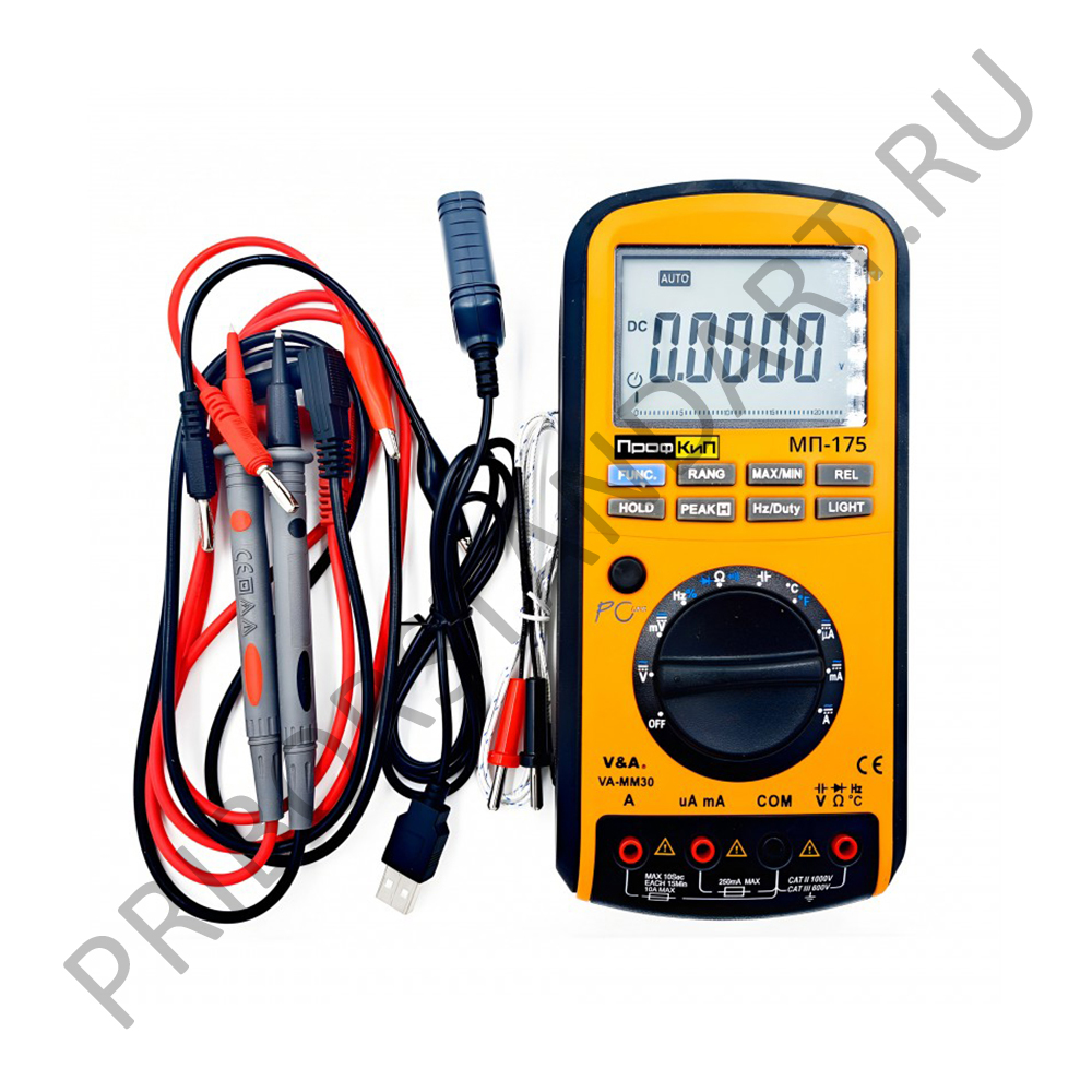 | Мультиметры переносные ПрофКиП МП-175 предназначены для измерения напряжения постоянного и переменного тока, силы постоянного и переменного тока, сопротивления постоянному току, электрической ёмкости и частоты. Приборы оснащены жидкокристаллическими дисплеями для индикации результатов измерений. Мультиметры отличает компактность, незначительная масса и возможность автономного питания в различных условиях эксплуатации. Мультиметры предназначены для использования в цеховых и лабораторных условиях, при наладке и ремонте радиотехнического оборудования, электронных схем и узлов автоматики, а также при тестировании и ремонте промышленных электросетей. Мультиметры представляют собой компактные портативные многофункциональные измерительные приборы в ударопрочном исполнении, принцип действия которого основан на аналого-цифровом преобразовании входных сигналов. Управление процессом измерения осуществляется с помощью встроенного микропроцессора. |