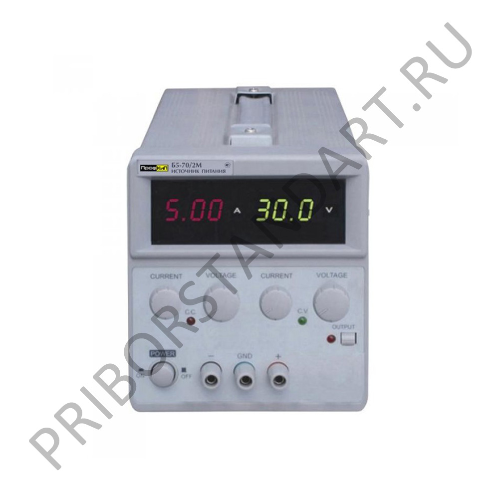 ▪ Количество каналов: 1 ▪ Выходное напряжение: 0 В … 60 В ▪ Выходной ток: 0 А … 5 А ▪ 3-разрядный LED-дисплейОсновные технические характеристики источника питания аналогового ПрофКиП Б5-70/2М
