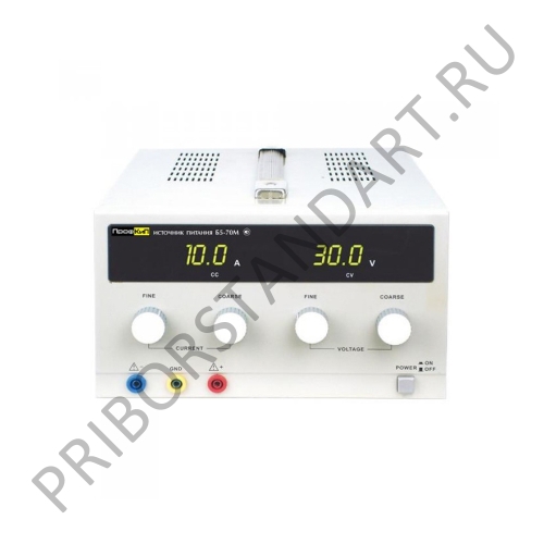 ▪ Количество каналов: 1 ▪ Выходное напряжение: 0 В … 30 В ▪ Выходной ток: 0 А … 10 А ▪ Два LED дисплеяОсновные технические характеристики источника питания аналогового ПрофКиП Б5-70М