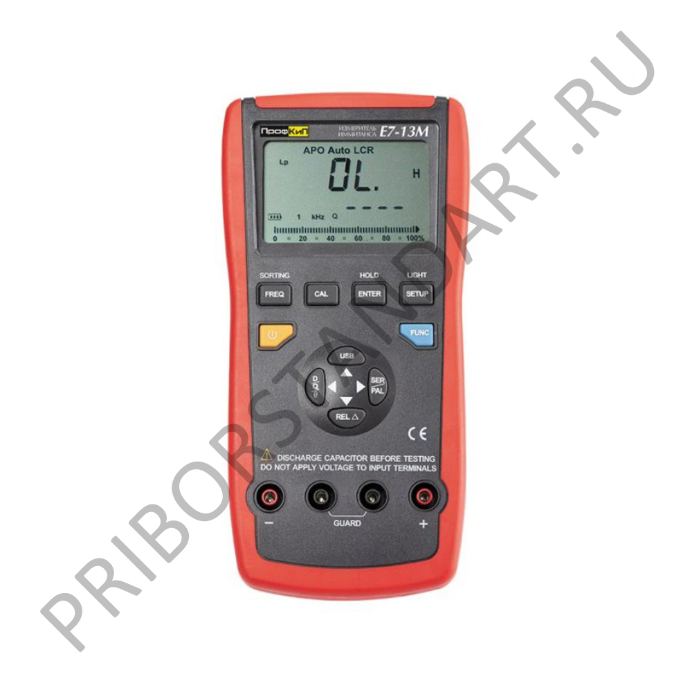 Портативный измеритель RLC ПрофКиП Е7-13М предназначен для измерения предназначенный для измерения индуктивности, емкости, сопротивления, параметров цепей (добротность, коэффициент потерь, фазовый сдвиг, импеданс, эквивалентное последовательное и параллельное сопротивление и т.д.) на частотах от 100 Гц до 100 кГц. ПрофКиП Е7-13М оснащен ЖК дисплеем с максимальной разрядностью 20000, позволяет производить измерения по параллельной и последовательной схемам, имеет функции калибровки и сортировки. Прибор имеет малое энергопотребление, режим автоматического отключения.