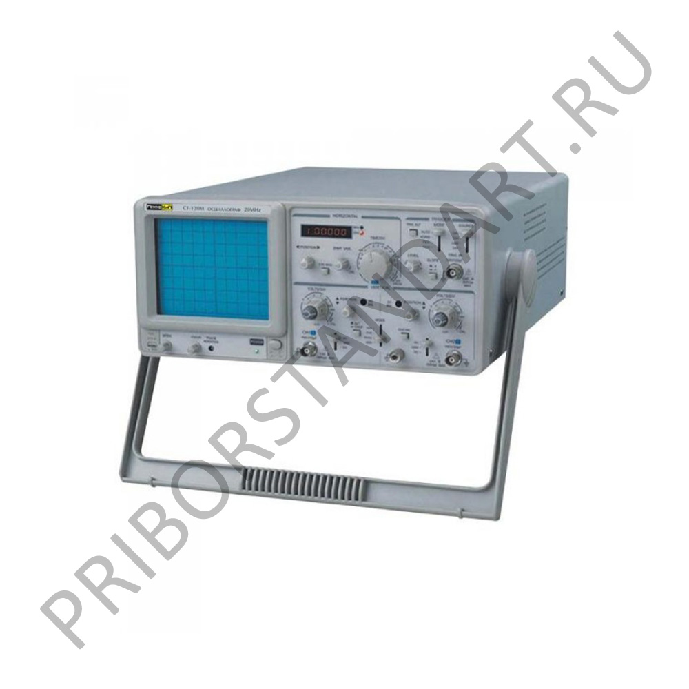 Осциллограф универсальный ПрофКиП С1-130М предназначен для исследования формы и измерения ампитудно-временных параметров одного или двух периодических сигналов в полосе пропускания от 0 МГц до 20 МГц путем их визуального наблюдения, а также детального исследования выбранной части растра по одному каналу при оперативном и периодическом контроле качественных, и количественных показателей телевизионного тракта и его отдельных звеньев во время проведении наладочных, ремонтных работ и при лабораторных исследованиях в условиях умеренного климата. Имеет встроенный частотомер. Осциллограф универсальный ПрофКиП С1-130М предназначен для работы в лабораторных и цеховых условиях и может использоваться для исследовательских, поверочных и ремонтных работ.Особенности и преимущества осциллографа универсального ПрофКиП С1-130М